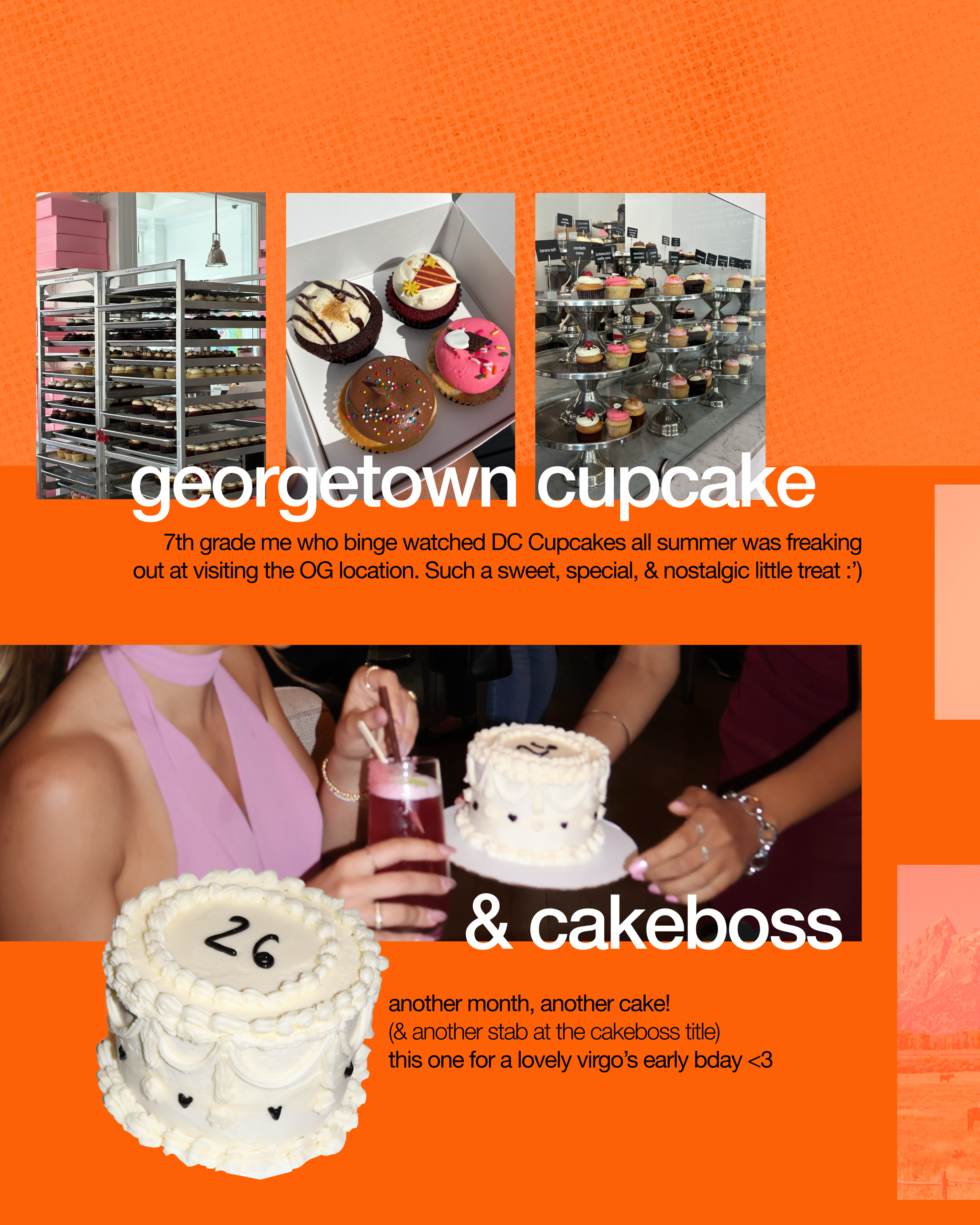 I always find the end of the summer to be the perfect time to soak up all the summer sweetness you can and this year was no different with a trip to my personal mecca, Georgetown Cupcake (the OG). Been wanting to come to the original location since I was 13 so this was a nostalgic little treat. Another sweet cake-scapade was the cake I made for a friend’s early bday celebration. Kept it super minimalistic with white frosting and black accents but loved how it came out (also was my first completely GF bday cake)! One cake closer to the cakeboss title. Stay tuned for next month’s for my sister’s bday!